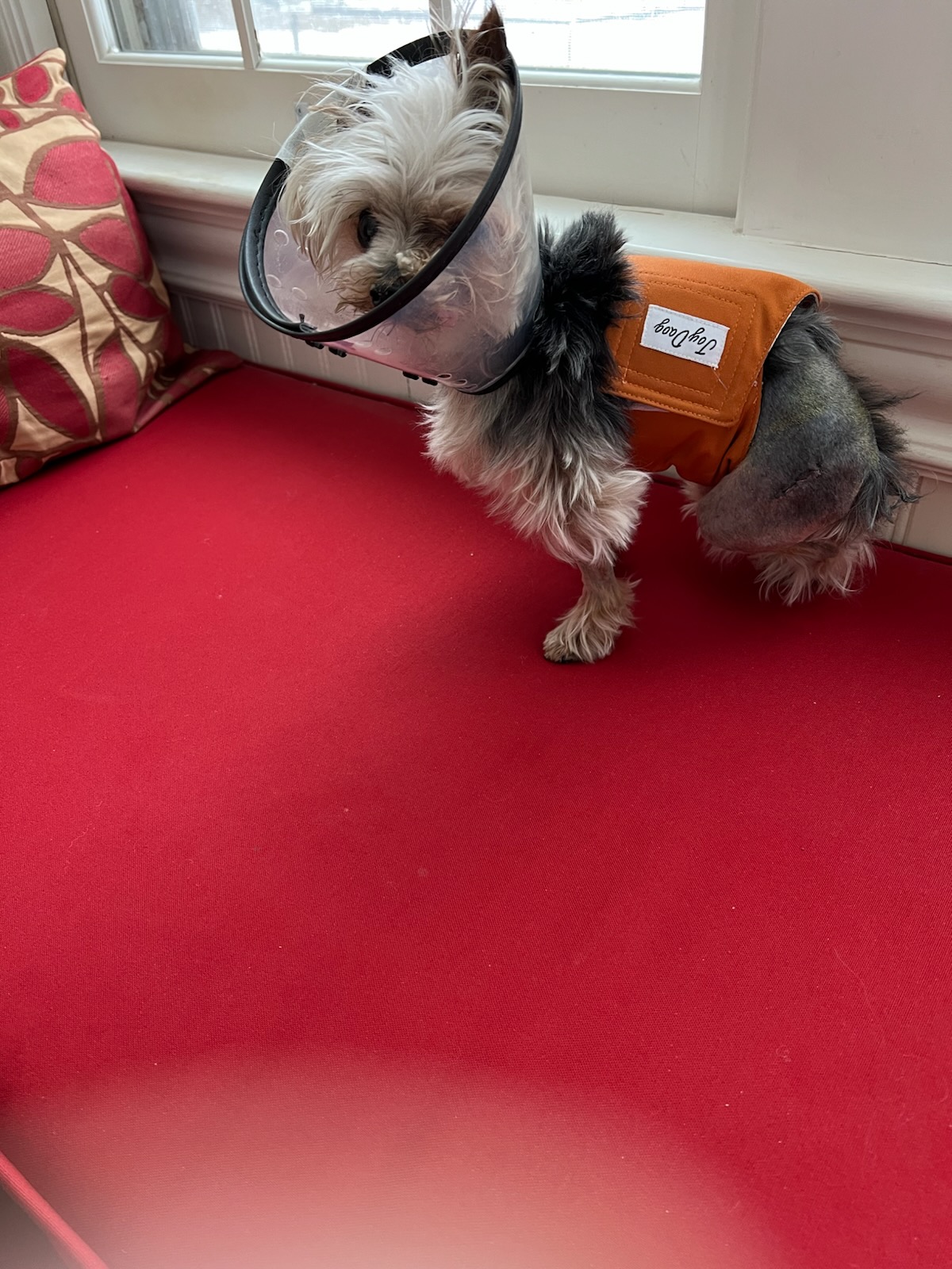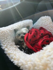 It was more than holiday stress that took the wind out of my sails and slowed my writing to a crawl. On December 4th I took my tiny 3.25 lb. Yorkie, Teddy, to the groomer. On returning home some three hours later, I lifted him out of his booster seat and gently set him on the ground next to the car. I DIDN’T NOTICE THE PATCH OF ICE!!!! I watched as all four legs were going in different directions as he tried to gain footing. Then I watched as he limped up to the house on three legs. An hour later I determined that although the leg didn’t seem broken, it was not weight bearing. This was not just a bruised knee.
